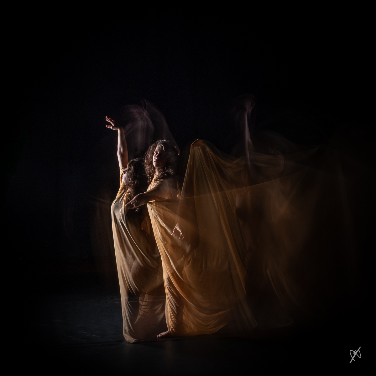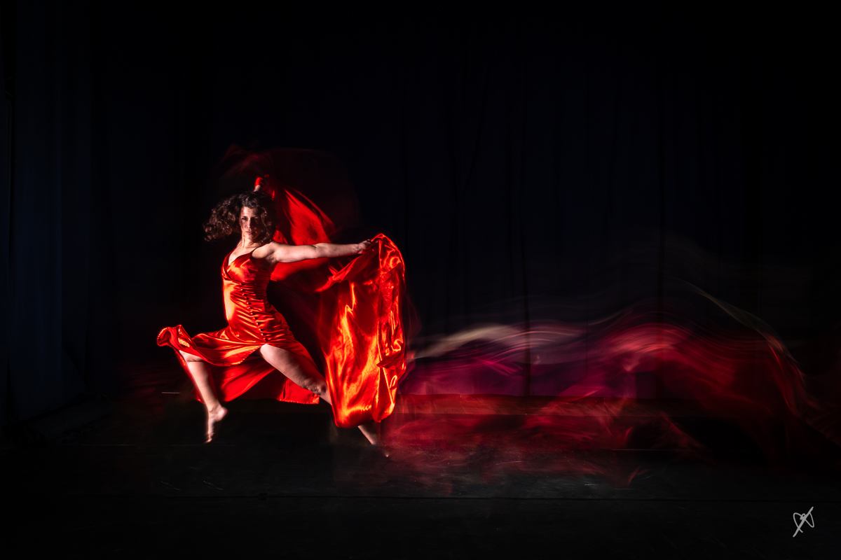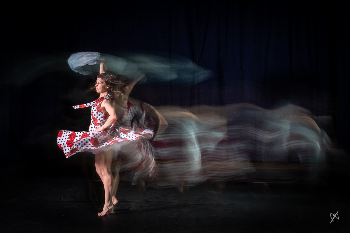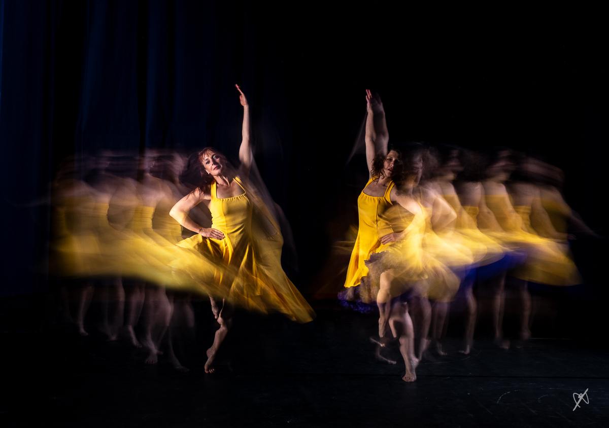 Sept photographes et deux danseuses ont travaillé toute la journée pour explorer les effets des poses longues éclairées par une lumière continue, combinée à un flash, afin de capturer les mouvements de danse sur scène.